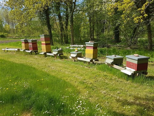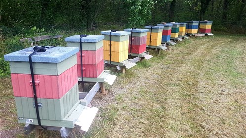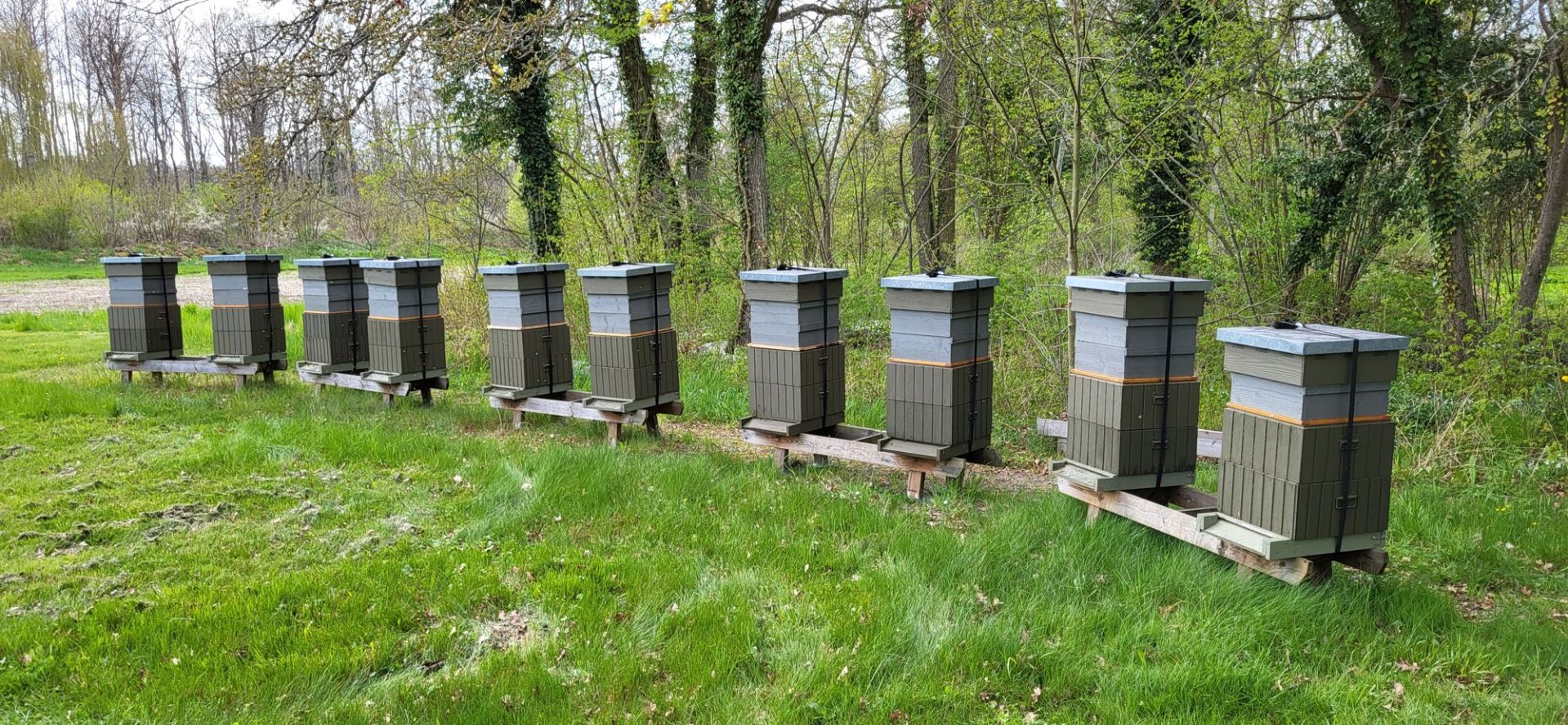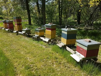 med HLS lådor. Önskemålet är att det ska finnas 10-12 samhällen i bigården. Ett är mycket starkt och får en skattlåda.