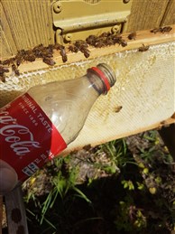 Kontroll idag så de har mat kvar. Ett samhälle till var borta, det var mycket svagt så det var ingen överraskning. De övriga ser bra ut, la på en påse Candy drivfoder så de blir starka lite fortare eftersom jag behöver avläggare i slutet på maj, och lite försommarhonung.