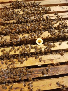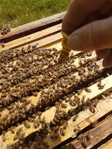 drottningar är krypfärdiga då, så jag kan få med lite snällare bin, det stora samhället är riktigt sura. Drottningen måste bytas så de kan slå gräset framför kuporna vilket de fick avbryta (: