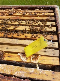 Samhälle nr 1 hade en dåligt parad drottning som lade hälften drönaryngel, denna bytte jag i slutet på juni men idag såg jag att det misslyckats. Så nu kommer jag att sätta till en ny igen och skaka ut alla bina en bit från kupan så att om det finns äggläggande arbetsbin ska de inte ta ihjäl min nya drottning.