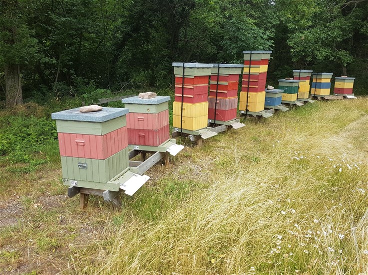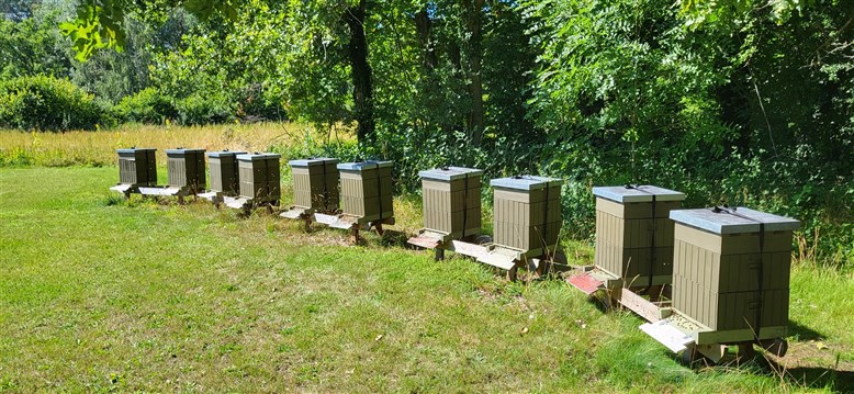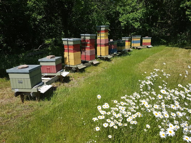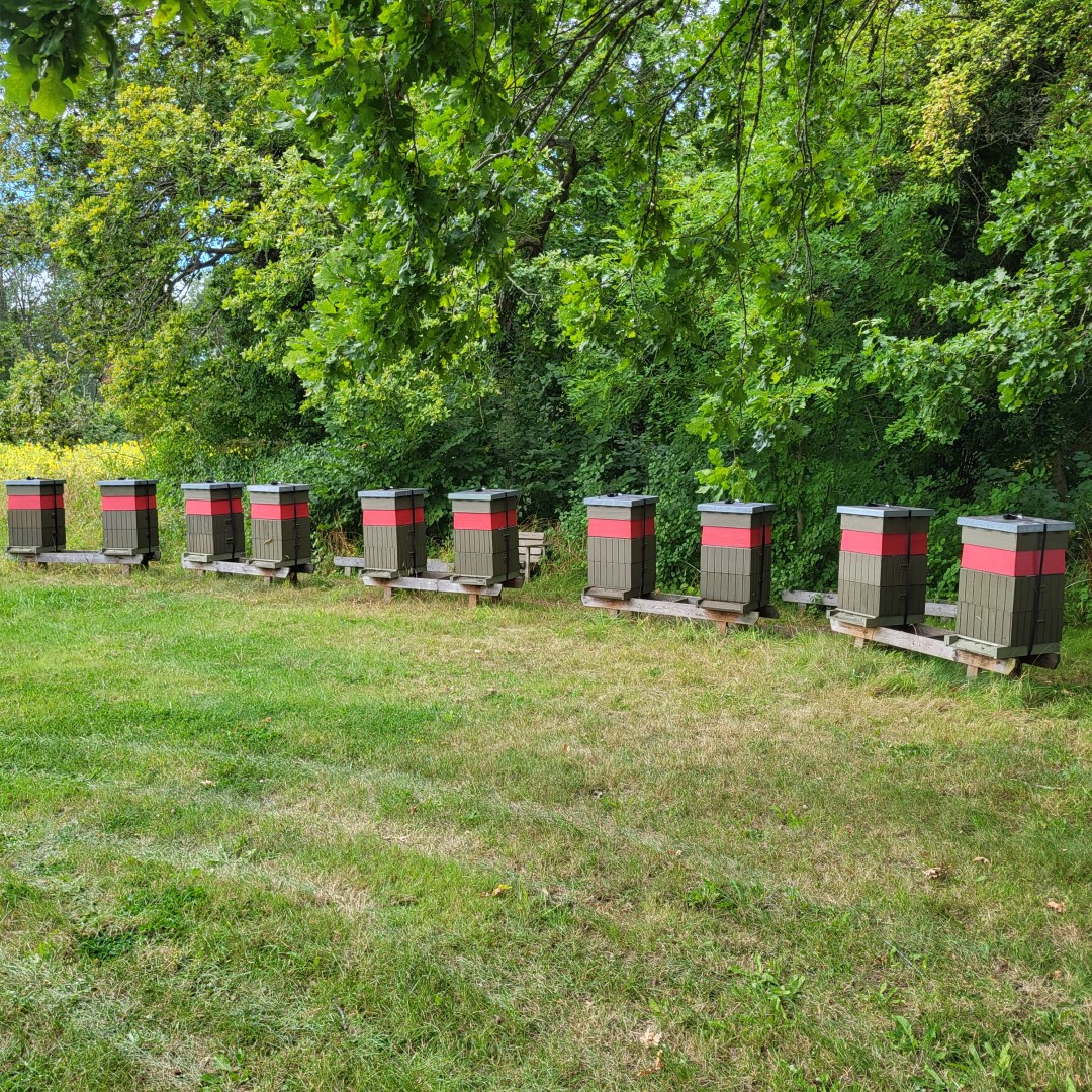 Det viktigaste med bigården är att det finns starka samhällen som kan sköta pollinering av alla växter, och honungen som