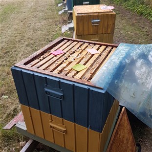 Jag har därför tagit bort alla skattlådor och matat med 50% sockerlösning för att få igång yngelsättning och få fram lite fler vinterbin. Och bytt ut mer än hälften av drottningarna mot nya 2025.