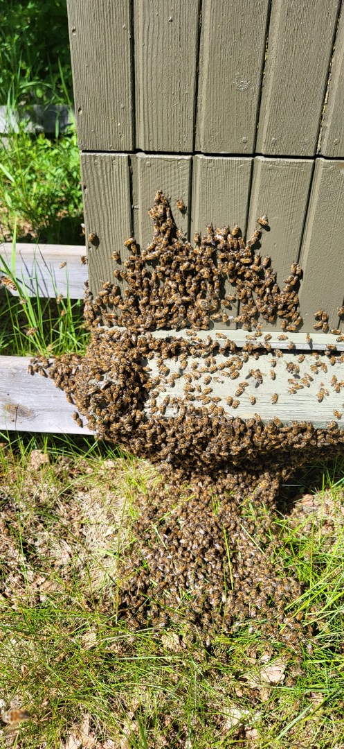 I ett samhälle lyckades jag inte hålla tillbaka svärmningen, så hälften stack iväg, men de har nu äggläggande drottning som jag ska byta förhoppningsvis nästa vecka.